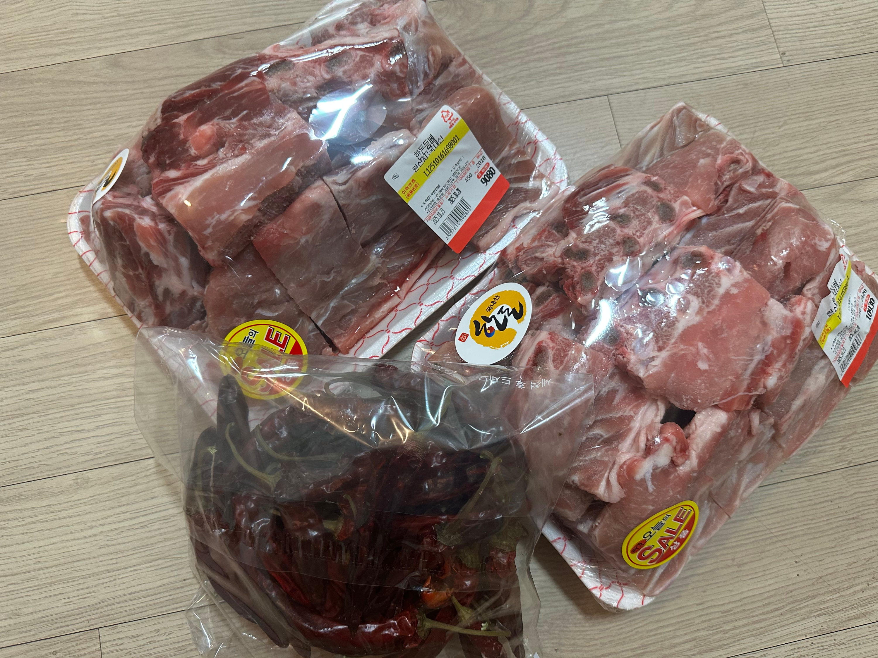 ✔ Pork backbones – about 10,000 KRW worth (enough for 4 people)
