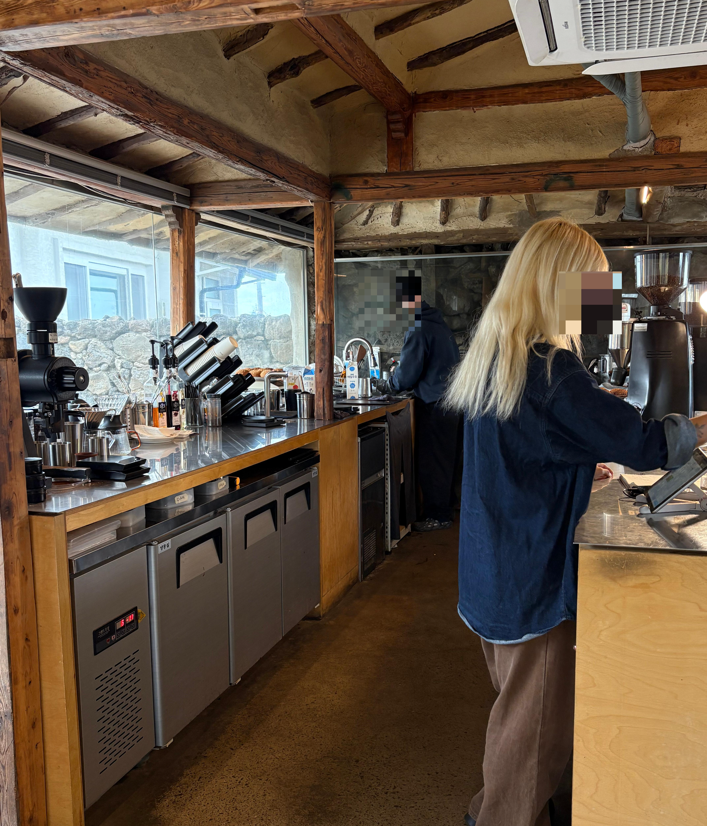 Coffee Nap Roasters Jeju is housed in a renovated traditional Jeju stone house. The low roof and original structure of the stone house have been carefully preserved, so you can feel a distinctly Jeju-style atmosphere from the moment you see the exterior. The space is divided following the traditional layout, with one side used as the café seating area and the other as the kitchen. Knowing this beforehand made the space feel even more interesting and meaningful to explore.