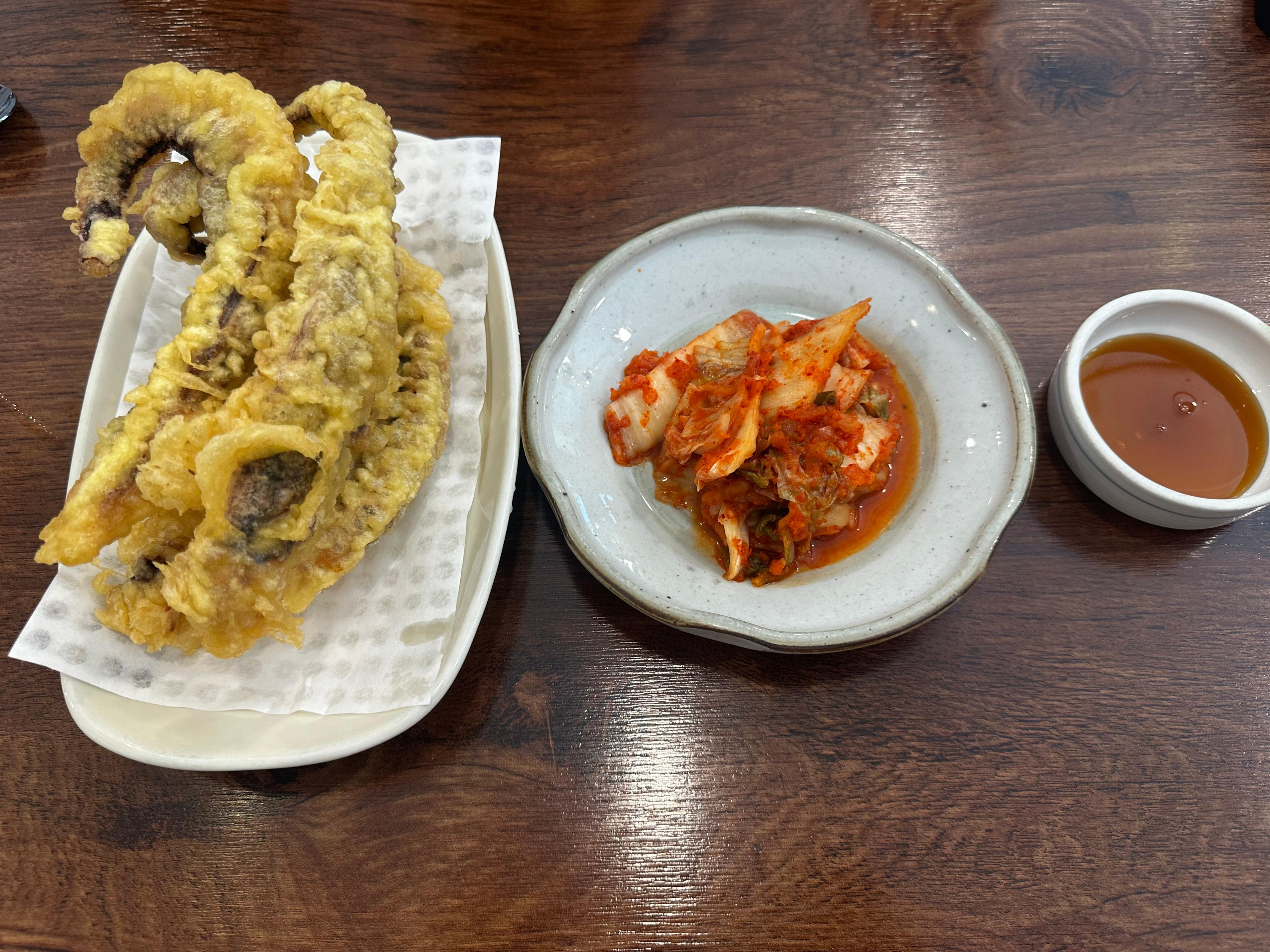 반건조 대왕오징어를 사용하셔서 튀김옷은 얇고 바삭했어요.