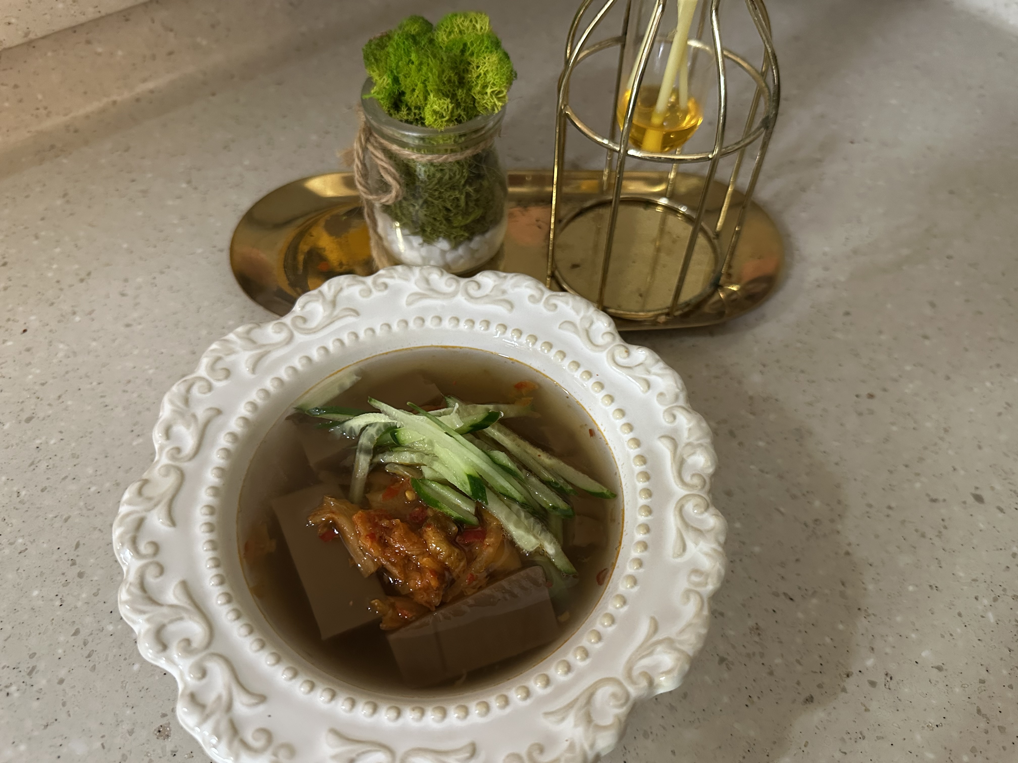 I’m going to show you how to make a super easy acorn jelly rice soup (Mukbap) in just five minutes.