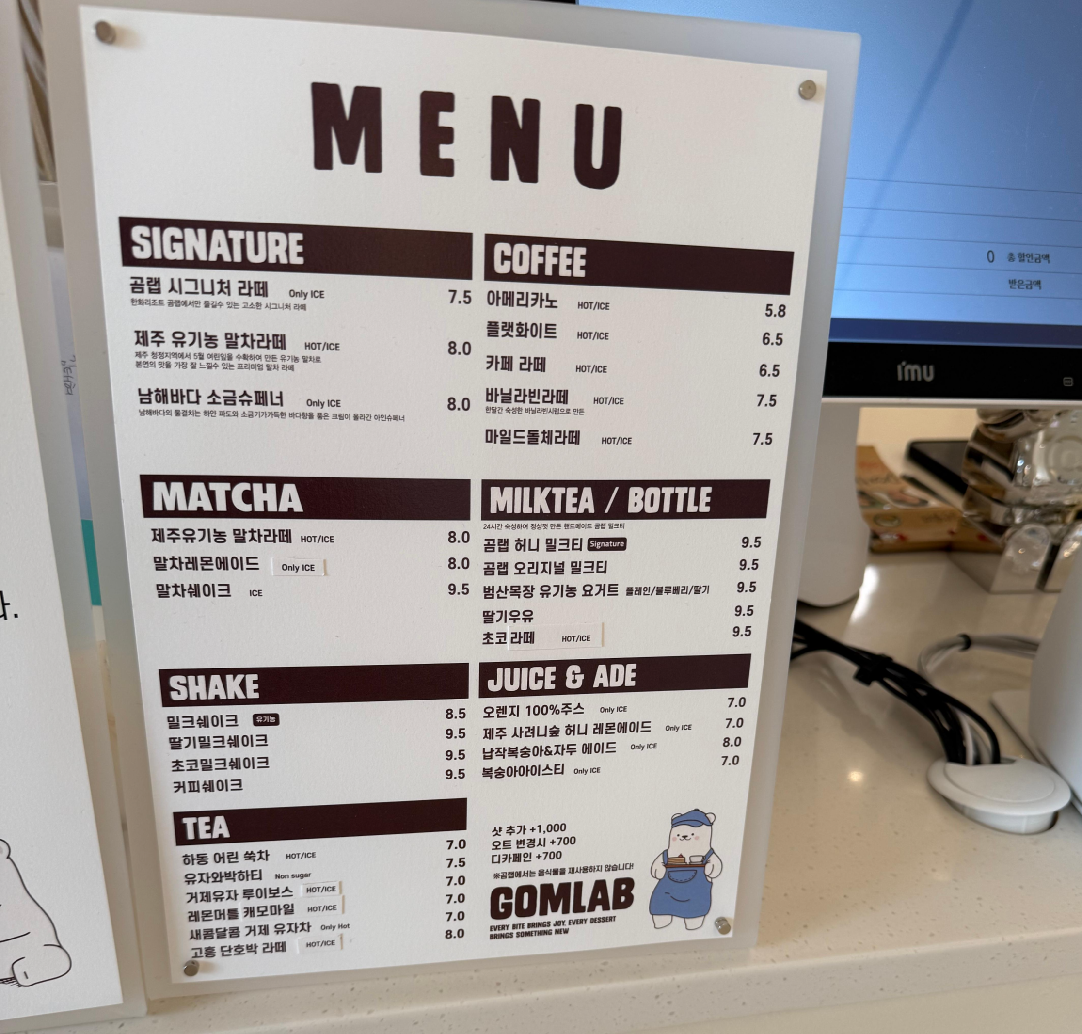 โ Signature Latte — KRW 7,500